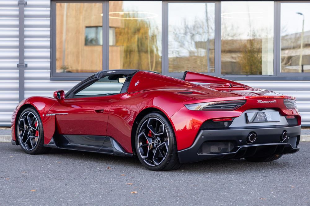 The Maserati MC20 is a two-seat, rear-wheel-drive supercar unveiled in 2020. It is powered by the twin-turbocharged 3.0-litre, dry-sump ‘Nettuno’ V6, which revs to 8,000rpm and delivers 621hp and 538lb-ft of torque to the rear wheels through an eight-speed dual-clutch transmission. The engine has a unique passive pre-chamber twin-spark ignition inspired by Formula 1, which is designed to help combustion in low-load scenarios.