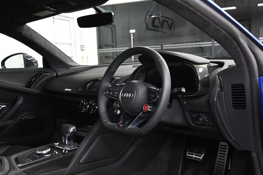 VVS are pleased to offer this 2023 Audi R8 V10 Performance edition finished in Ara Blue Crystal over Black leather interior. This examples comes equipped with Fully electric and heated seats, Carbon fibre interior package, Carbon fibre exterior package, Carbon fibre kick plates, Carbon fibre door mirrors, Carbon fibre engine bay with lighting, Bang & Olufsen sound system, Cross stitching to interior including headlining, Alcantara headlining, Front and rear parking sensors, Rear parking camera, Illuminated door sills, Black styling package, Technology package, CAT S5+ tracker with immobiliser, Ceramic brakes with Red callipers, 20" 5 double spoke dynamic style alloys and the remainder of the manufactures warranty from new.