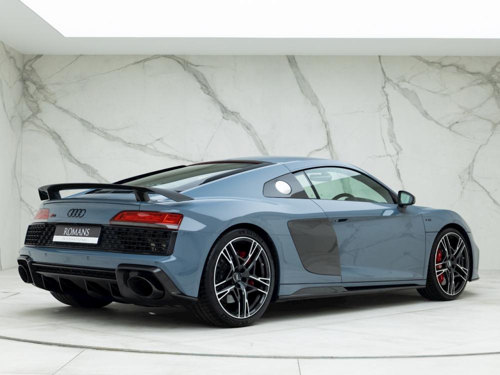 A carbon anti-roll bar was introduced to the facelift and along with the variable ratio system, which finetunes the steering to your desirability, meaning the R8 V10 Performance feels poised and in control around corners. The speed is as intoxicating as it has ever been - the V10 concerto sings as it nears the top of the rev range, coaxing you to apply more pressure to the throttle pedal. The carbon ceramic brakes, standard on the V10 Performance ensure that speed is scrubbed off swiftly.