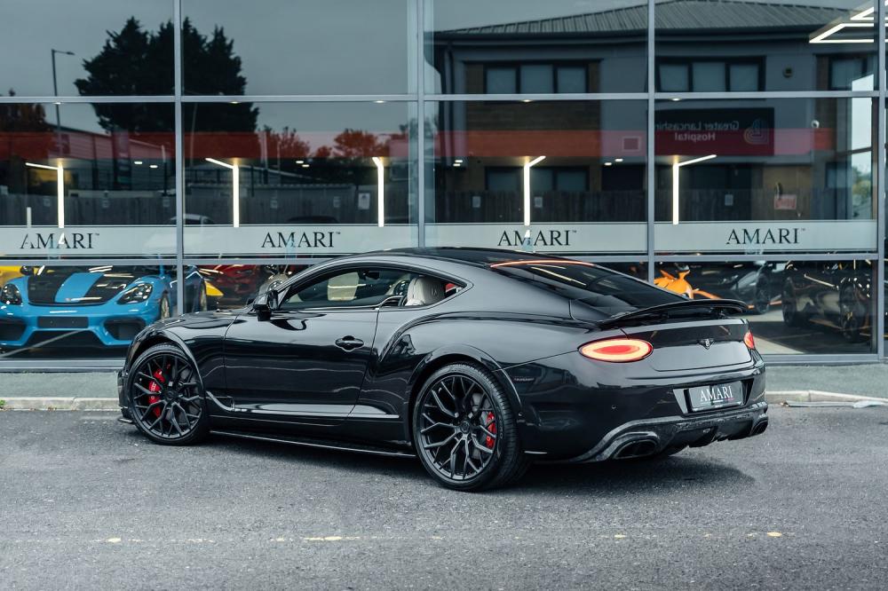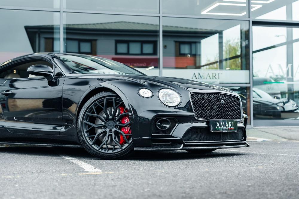 This 2021 Bentley Continental GT V8 Urban is a show-stopping grand tourer dressed in Onyx Black Metallic with a full Black leather interior—every inch crafted for presence and prestige. Registered in September 2021 (71 plate), the car is enhanced with Bentley GT Urban Aero package, featuring wide-arch carbon fibre bodywork, an Urban front and rear bumper and splitter, side extensions, rear diffuser, spoiler, plus full carbon fibre inserts and the rear spoiler. The look is sharpened by 22-inch Urban forged alloy wheels in satin black, red brake calipers, blacked out Bentley badges front and rear, and the Continental’s Blackline Specification. Further luxury comes via Mulliner Driving Specification, Touring Specification, Bentley Dynamic Ride, and the Front Seat Comfort Specification. It includes the performance exhaust and satin black billet exhaust tips, wheel spacers to enhance stance, and features such as inductive phone charging to blend usability with craftsmanship.