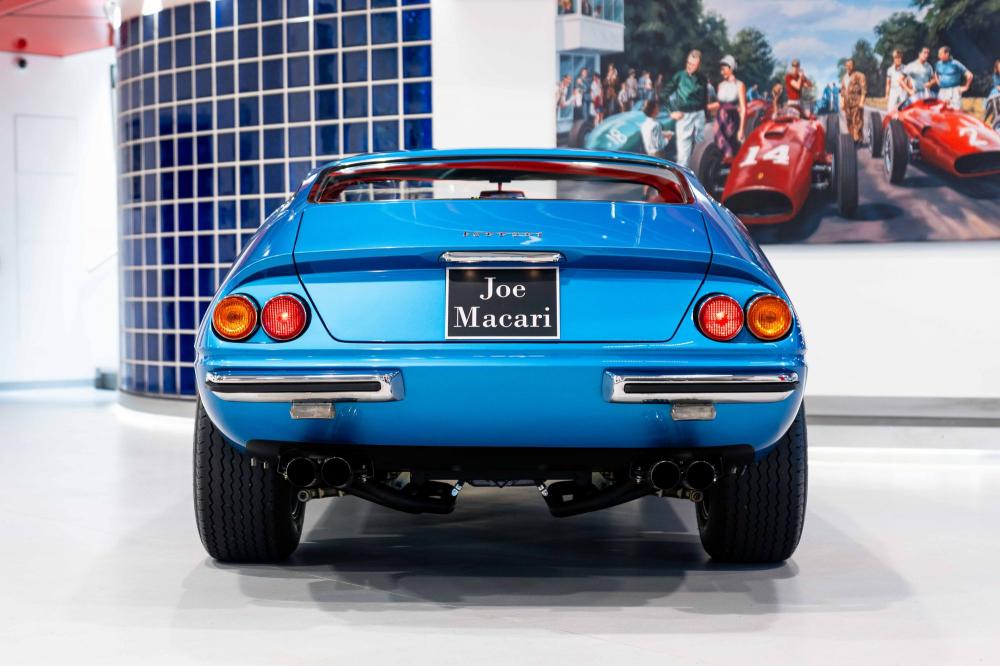 Between 2019 and 2021, the car underwent a meticulous full restoration with Joe Macari Classics. This comprehensive process included a bare-metal respray in its original Blu Met. Dino, along with a complete interior retrim in Pelle Blu leather. Mechanically, no detail was overlooked - the engine, transmission, differential, suspension, brakes, and steering were all fully rebuilt to ensure the car performs as beautifully as it looks. After the restoration was finished, the Daytona was sent to Elite Detailing in London who carried out a complete detail to the car before applying full-body paint protection film, ensuring its pristine finish is preserved.