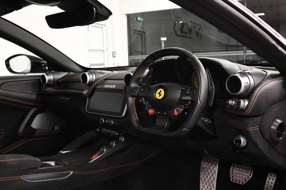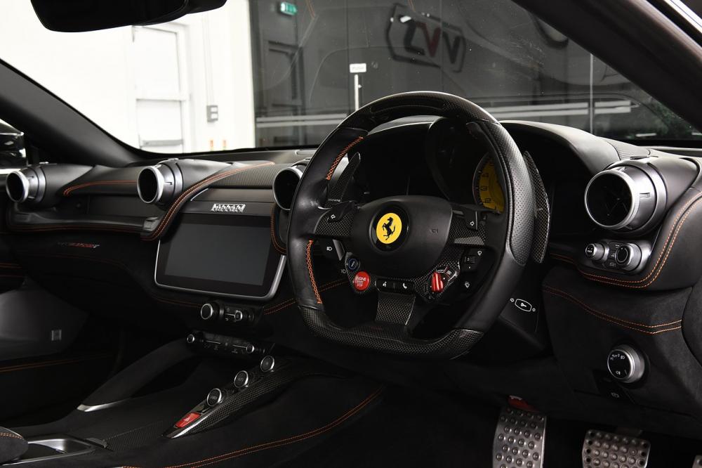 VVS are pleased to offer this 2019 Ferrari GTC4 Lusso finished in Nero Daytona over Nero leather and alcantara interior. This example is equipped with Carbon fibre drivers zone with LED's, Carbon fibre central bridge, Carbon fibre centre caps, Panoramic roof, Cavallino stitched on headrests in Arancione, Diamond stitch in Arancione, Privacy rear windows, Yellow rev counter, JBL sound system, Surround view cameras, Scuderia shields, Italian flag, Black tailpipe tips, Front grille with chromed edges, Rear wiper, Front end PPF, Gold brake callipers, 20" Forged wheels in Grey with Diamond face and full Ferrari service history from new.