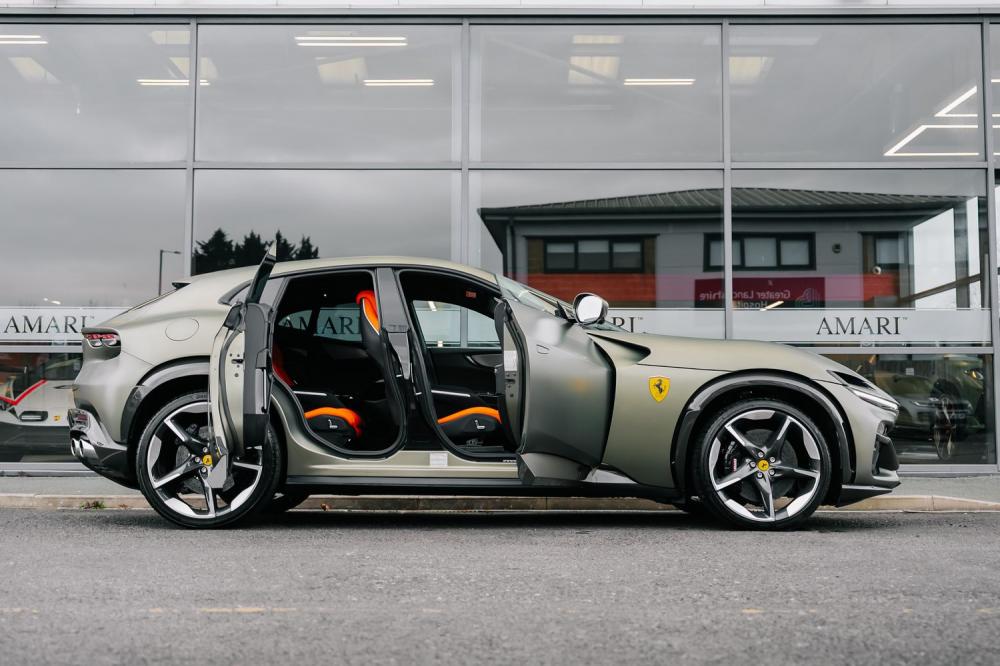 This 2024 Ferrari Purosangue, finished in rare Matte Verde Masoni with a bold Orange Hide interior, has just 3,600 miles and features an extensive carbon fibre package, panoramic roof, high-end audio, and a set of winter wheels. It’s covered by Ferrari Warranty and the 7-Year Maintenance Programme.