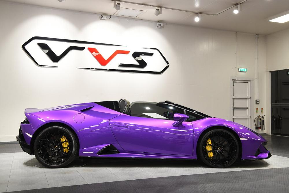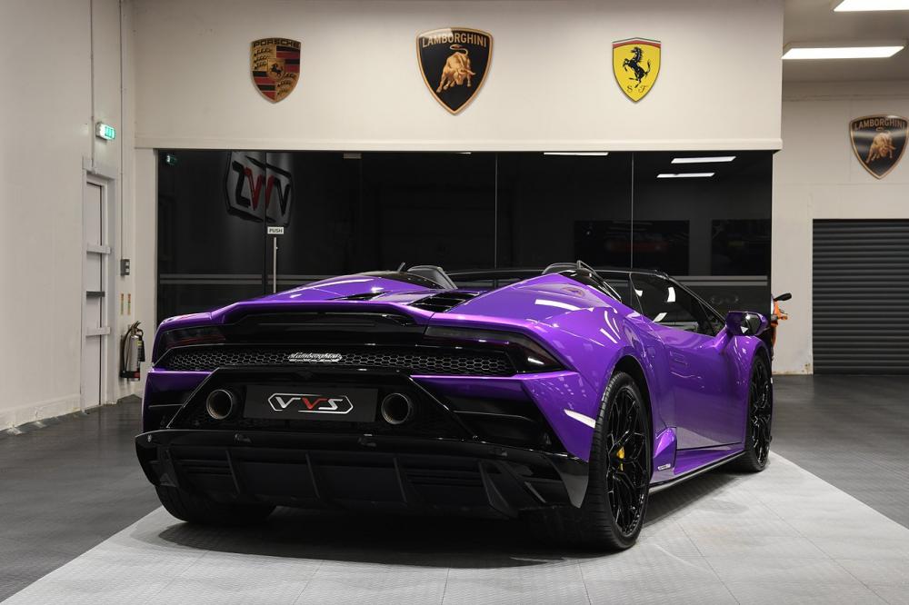 VVS are pleased to offer this 2020 Lamborghini Huracan LP640-4 Evo Spider finished in Viola Parsifae over Nero leather interior. Thiss example is equipped with Fully electric and heated comfort seats, Giallo contrast stitching, Gloss black interior trim, Navigation, Cruise control, Bluetooth connnectivity, Branding package, Style package, Sports exhaust, Front lifiting system, Front and rear parking sensors, Rear parking camera, Front end PPF, Giallo brake callipers, 20" Narvi alloy wheels finished in gloss black and full Lamborghini service history from new.