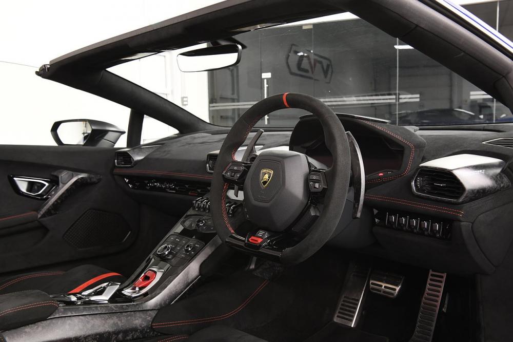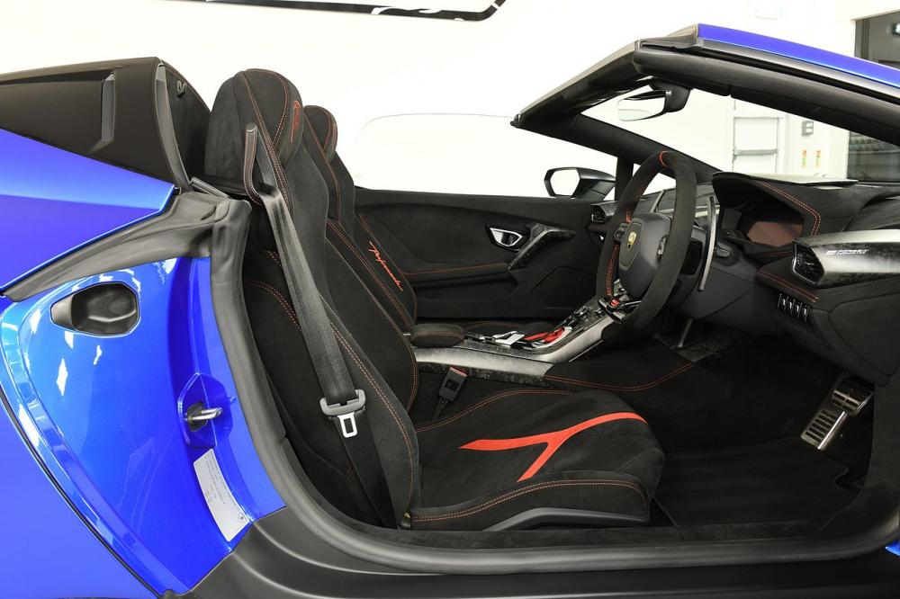 VVS are pleased to offer this 2018/68 Lamborghini Huracan LP640-4 Performante spyder finished in Blu Nethuns over Nero alcantara interior with Rosso stitching. This example comes equipped with Fully electric and heated seats, Front and rear parking sensors, Rear parking camera, Lifting system, Navigation, Branding package, Full stealth PPF, Rosso brake callipers, 20" Loge alloys finished in Satin black and full Lamborghini main dealer service history from new.