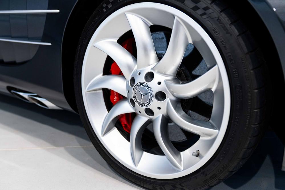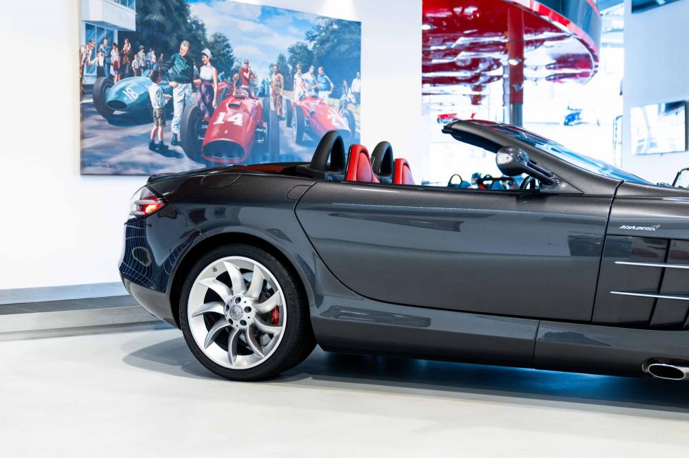 Built as a 2011 model-year example, this particular SLR McLaren Roadster is finished in Crystal Palladium Grey Metallic over a Silver Arrow 300 SL Red leather interior and features a dark red convertible hood and matching red brake callipers. The car was delivered new to Italy and had covered just 3,583 kms when it was sold to a French collector in 2016.