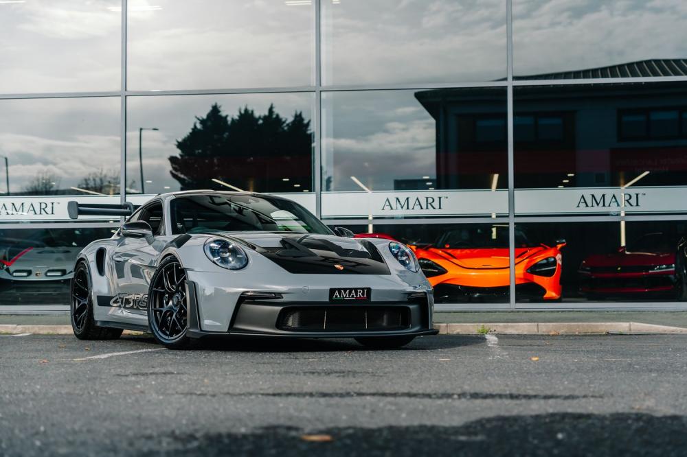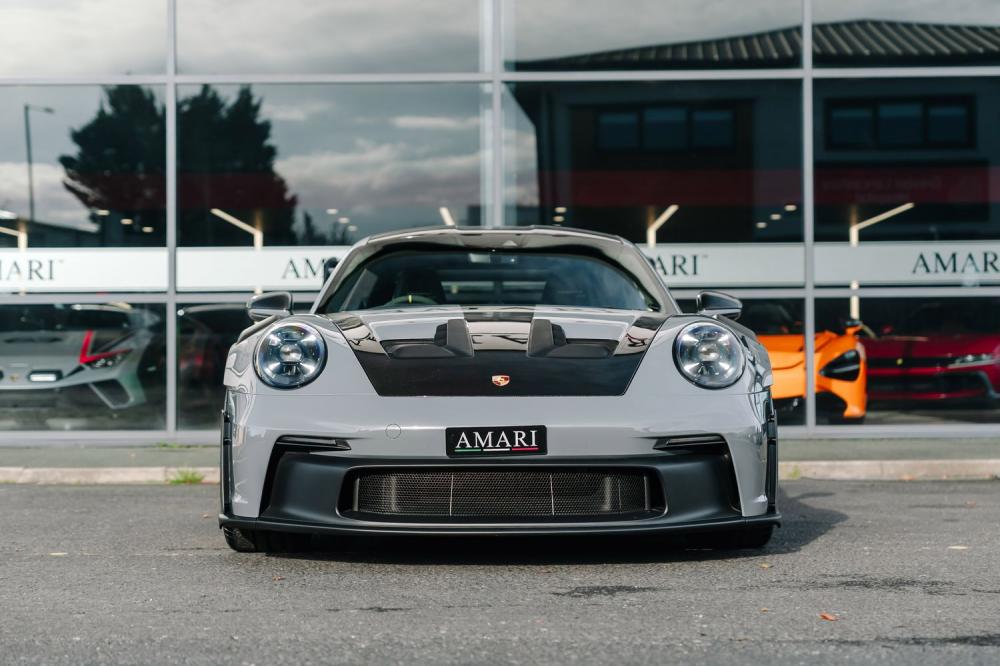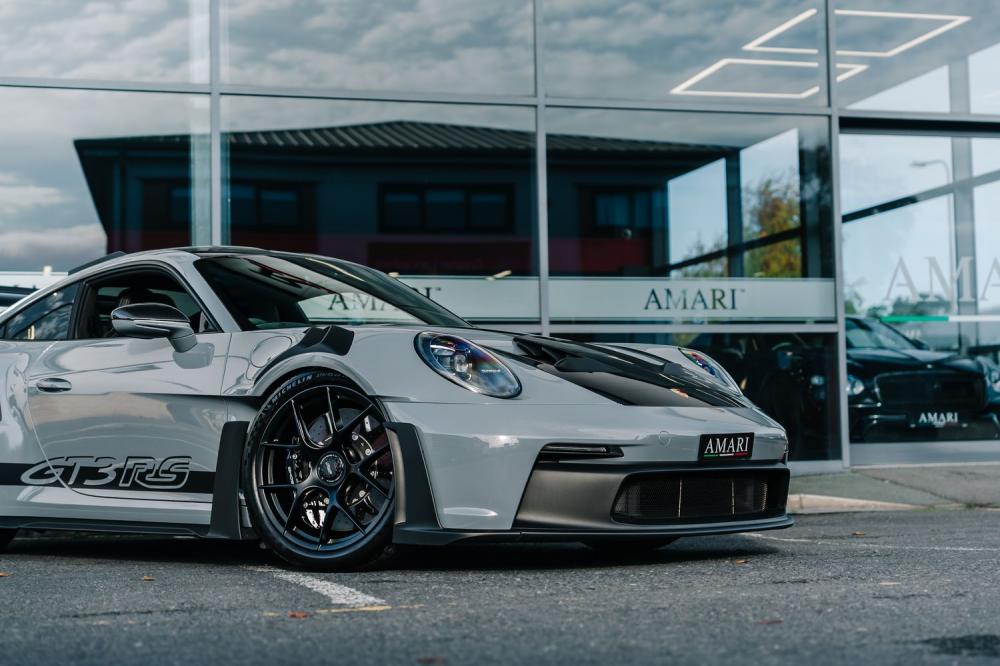 This 2024 Porsche 911 GT3 RS Weissach is the ultimate track-bred 911 for the road, marrying motorsport performance with precision engineering. Powered by a 4.0 litre naturally aspirated flat-six that revs to 9,000 rpm and delivers approximately 525 PS, the GT3 RS reaches 0-62 mph in about 3.2 seconds and hits a top speed close to 184 mph (296 km/h). What elevates this example further is the highly desirable Weissach Package — the pinnacle of Porsche’s lightweight and performance upgrades. This includes carbon-fibre bonnet, roof and wing components, forged magnesium wheels, and a CFRP roll-cage version as part of the track-centric enhancements.