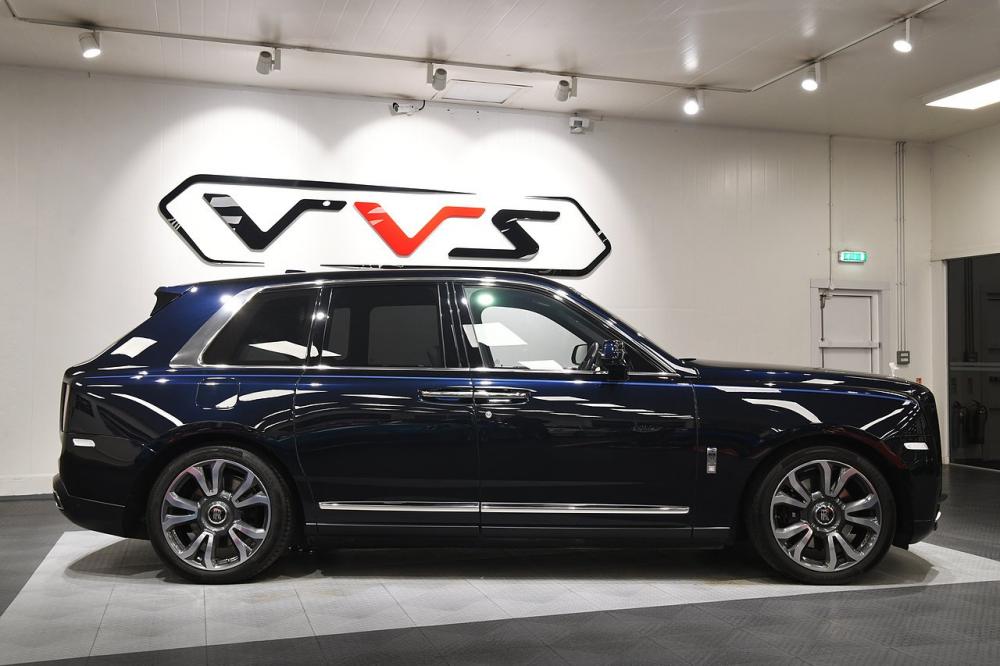 VVS are delighted to offer this 2018 (68) Rolls-Royce Cullinan V12 presented in Sapphire Black Metallic with Sea shell leather interior and Cobalto Blue outlining and piping. This vehicle comes complete with a high specification including Double coach line in Cobalto Blue, 22" 10 Spoke Diamond finished wheels, Rear picnic tables, Rear entertainment package, TV Tuner, Heated massage and ventilated seats, Illuminated SOE in Crystal, Bespoke audio system, Panoramic sunroof and a full Service history from new.