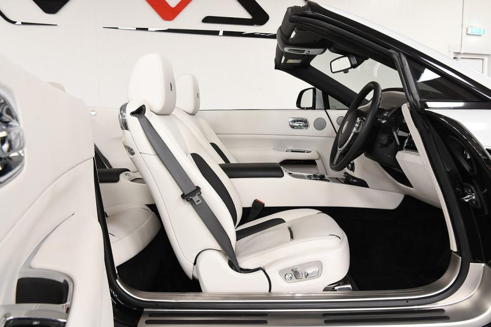 VVS are pleased to offer this 2018 Rolls Royce Dawn finished in Diamond Black metallic over Seashell leather interior. This example is specified with Fully electric and memory front seats, Heated and ventillated front seats, Heated rear seats, RR logo stitched on headrests, Head up display, Front and rear parking sensors, 360 Surround camera, Piano black interior trim, Comfort access, Driving assistant plus, Lane departure warning, Night vision with person recognition, Black painted brake callipers, 22" Multi spoke alloys finished in gloss black and comes with a full Rolls Royce main dealer service history from new. This vehicle is currently wrapped in light "Nardo Grey" with exterior package wrapped in gloss black.